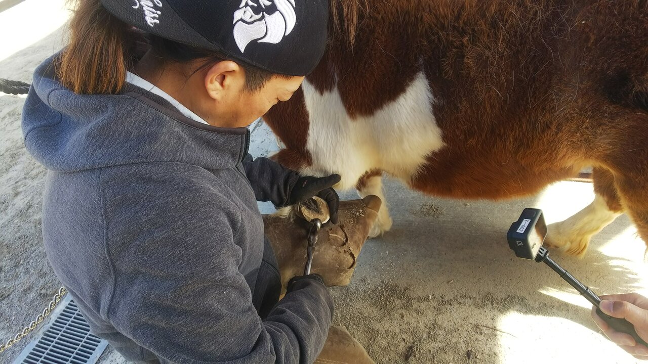 人間が爪切りを行うように、お馬さんも蹄を削って整えなければなりません。