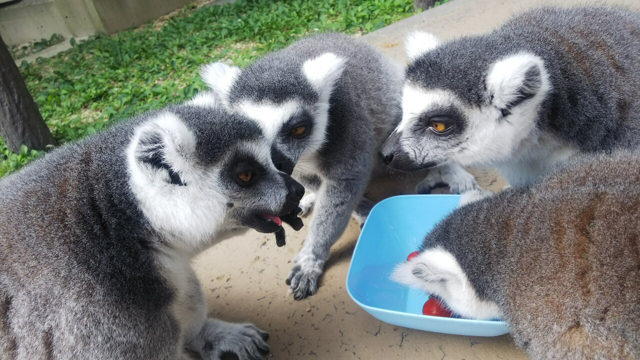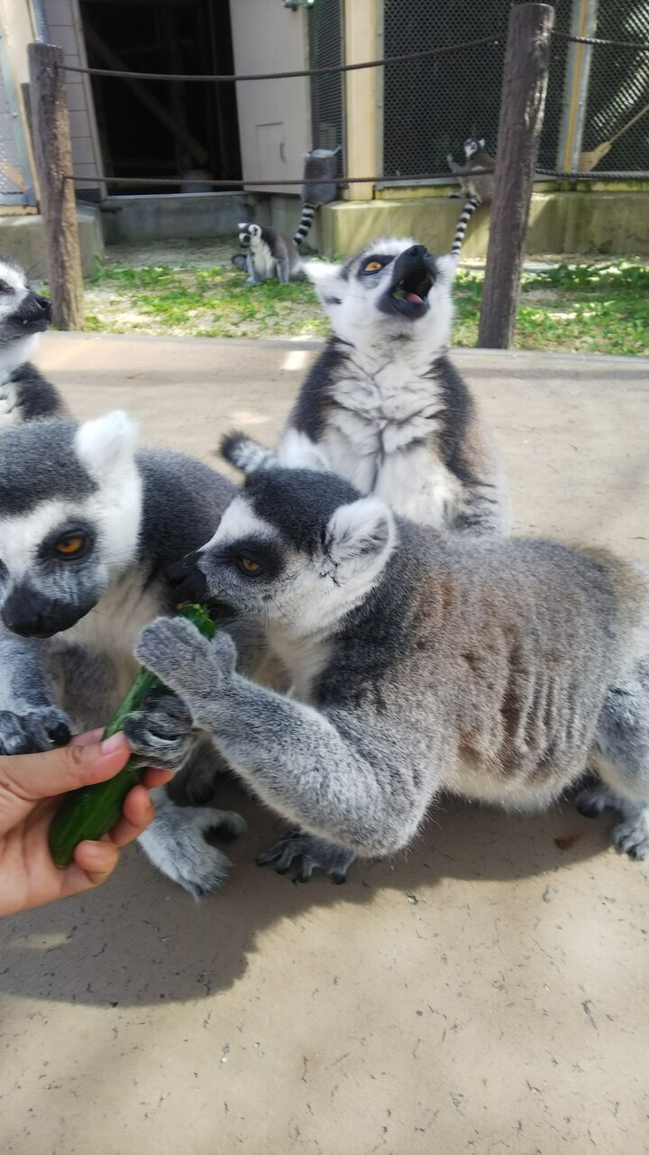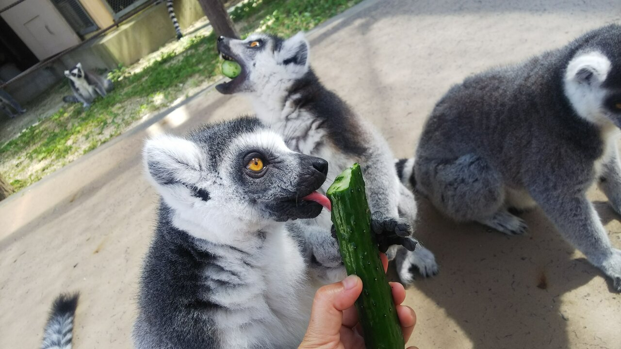さて本日は、ワオキツネザルにミニトマト、キュウリ、ブドウをあげたときにお話し。