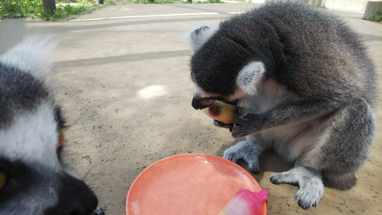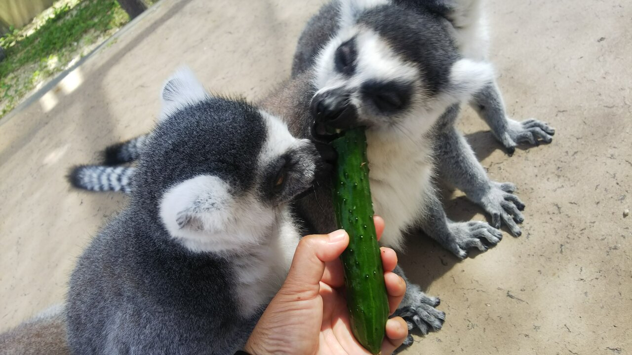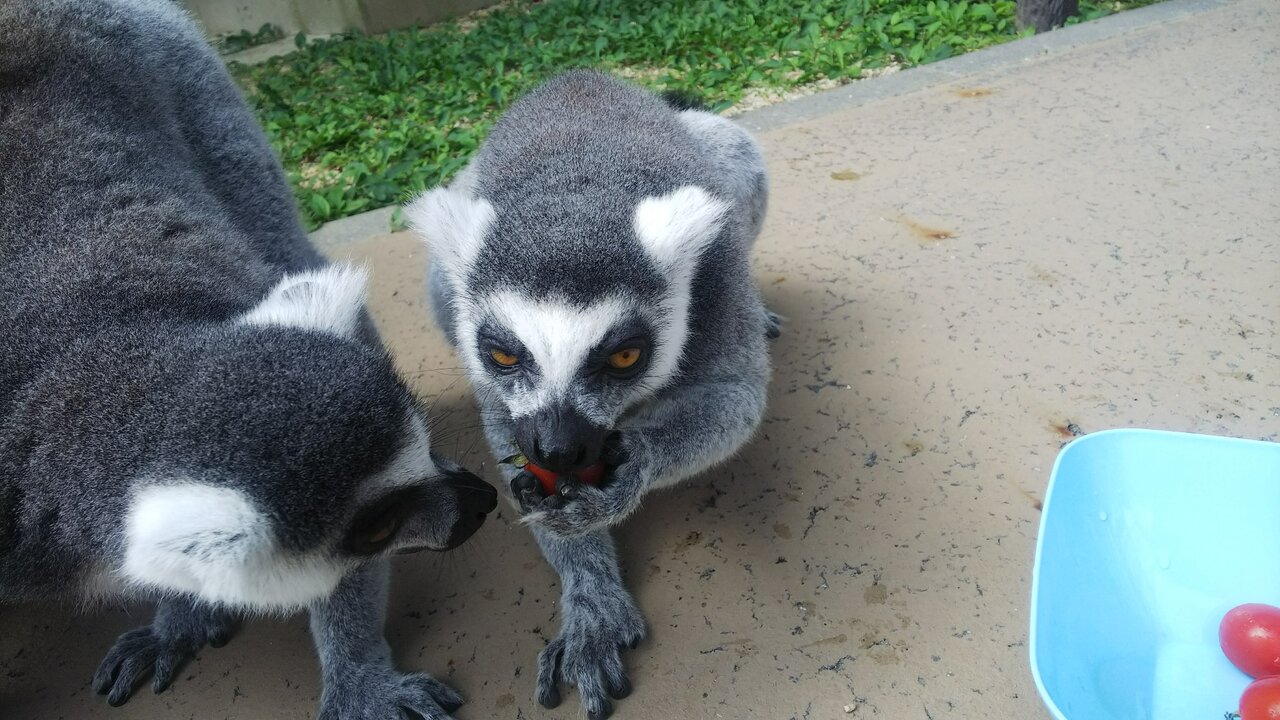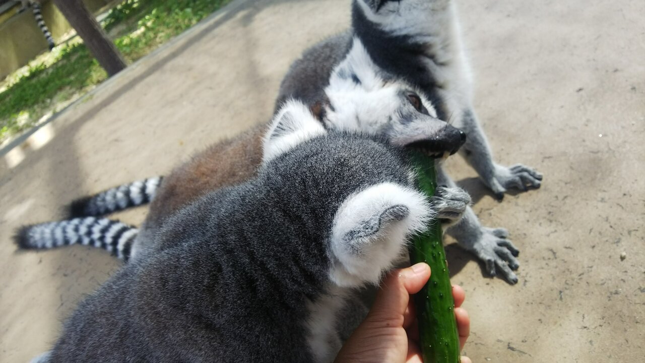 さて本日は、ワオキツネザルにミニトマト、キュウリ、ブドウをあげたときにお話し。