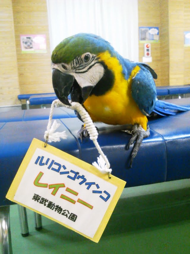 そこで今回はご無沙汰しているルリコンゴウインコ「レイニー」の東武動物公園に来園したころの若々しい姿をお披露目します。