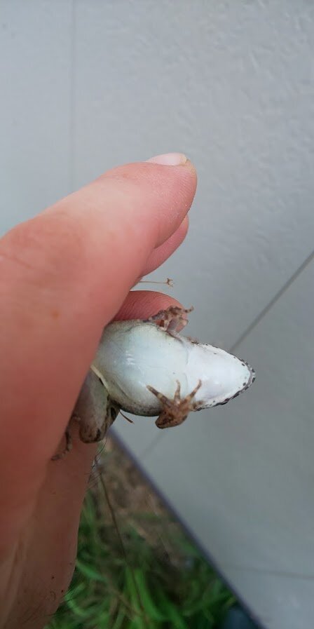 写真のように、ヌマガエルは模様があまりなく、白いです。