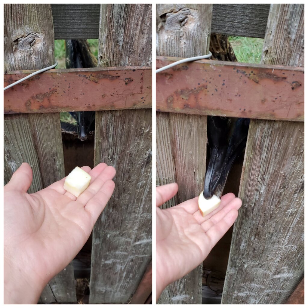 なぜか餌を置いている箱をチヒロちゃんの方へどんどん押して行ってしまいます。