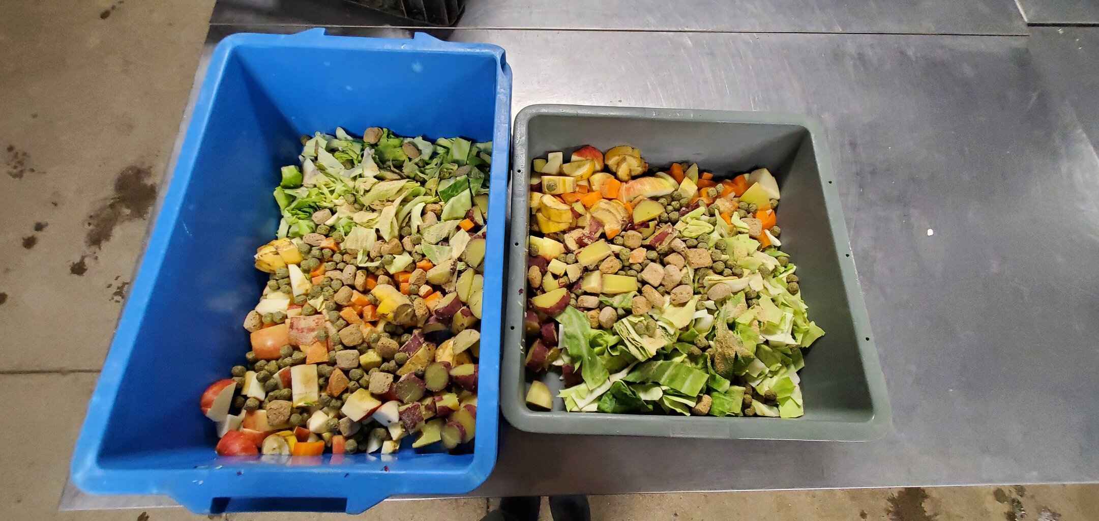 色とりどりの果物とお野菜に、同じ雑食性のクマ・サルのドックフード等で蛋白質を補っています。