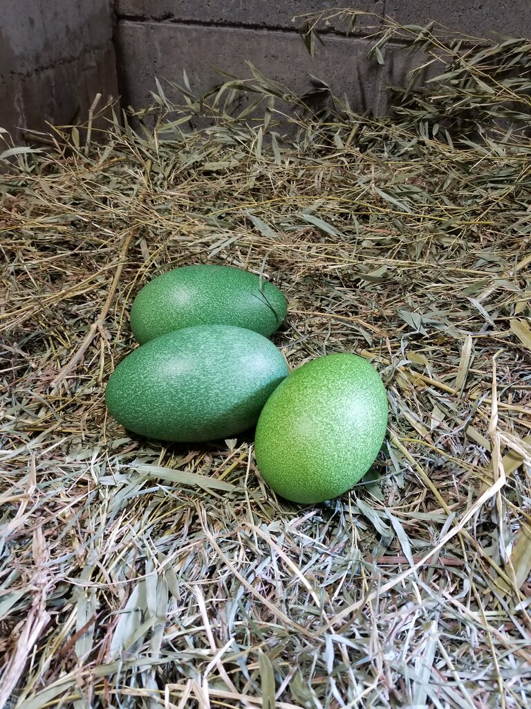 ヒクイドリの卵はきれいな薄緑色です。メスは産卵したらオスに卵を託して立ち去ってしまうそうです。