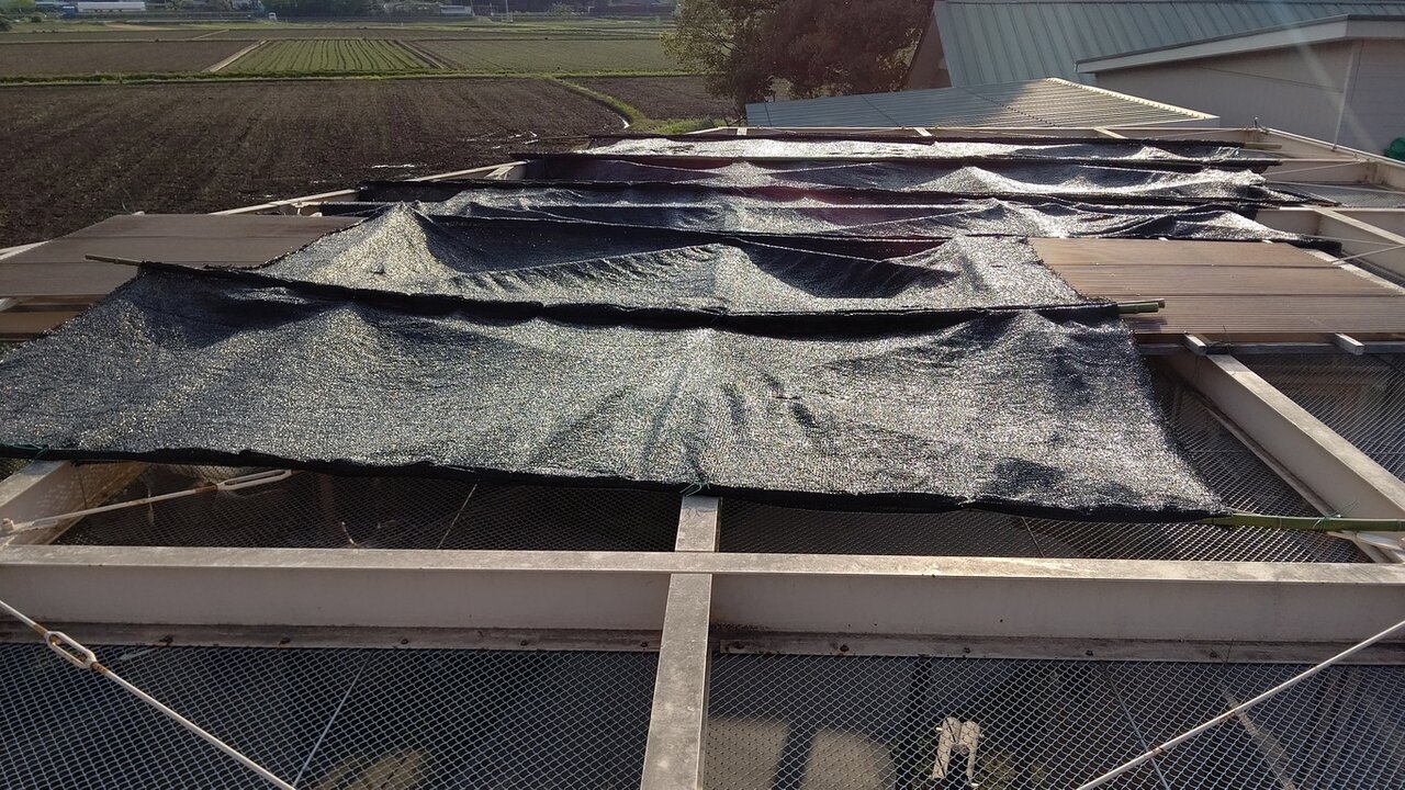 最近とても暑い日があったので、ワオワオガーデンの屋根に毎年恒例のカンレイシャ設置