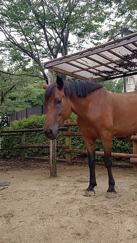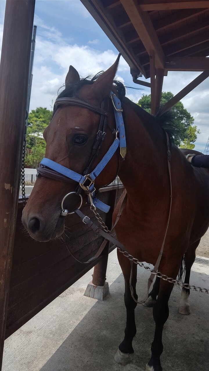 眠くなってしまったようで、馬装場の柱に顎の乗せ居眠りをしていました(笑)