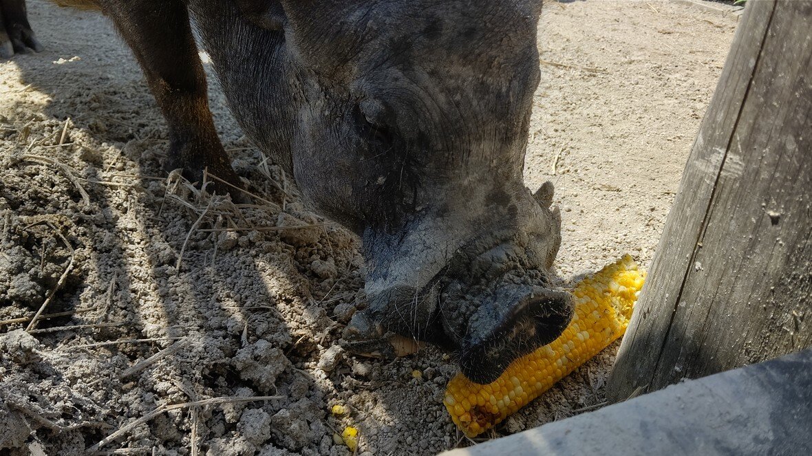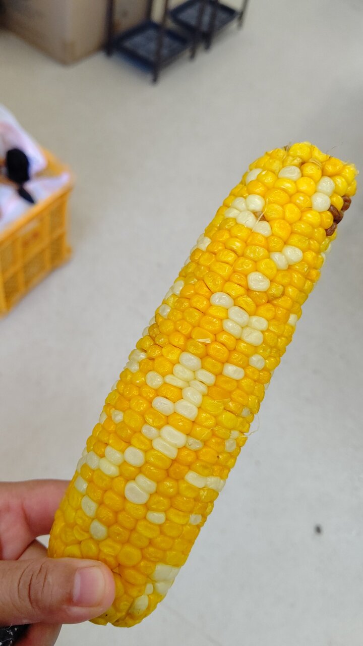 この間、トウモロコシをいただいたので、トンキチ君に丸ごとあげてみました!