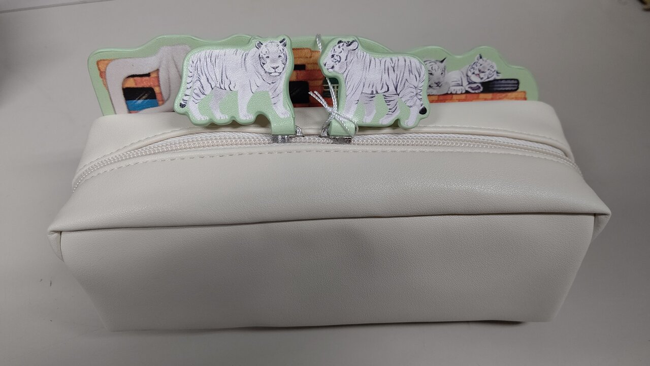 ポーチのホワイトタイガーは、ロッキーのつぶらなお目目も再現されていて