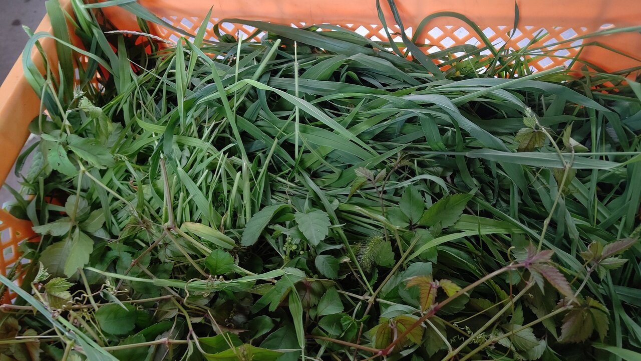 汗で目が染みて目も開かないし、息切れするし、大変な思いをして草を確保してます(笑)