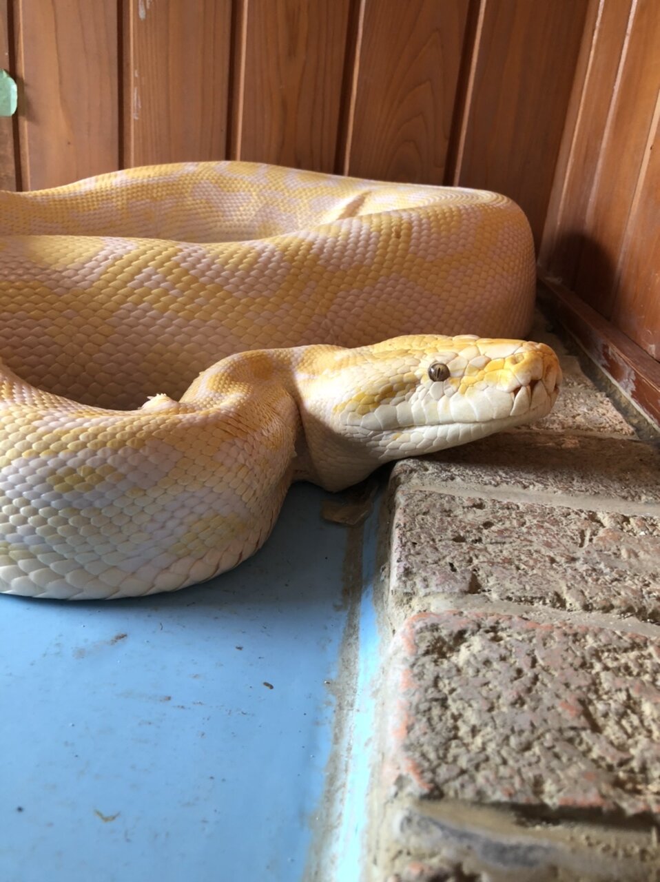 なんと体長約3.6メートル、体重約34kgもあるヘビさんの中でもトップクラスに大きな体を持つヘビさんです。当然東武動物公園の中では一番身体の大きなヘビさんですね。
