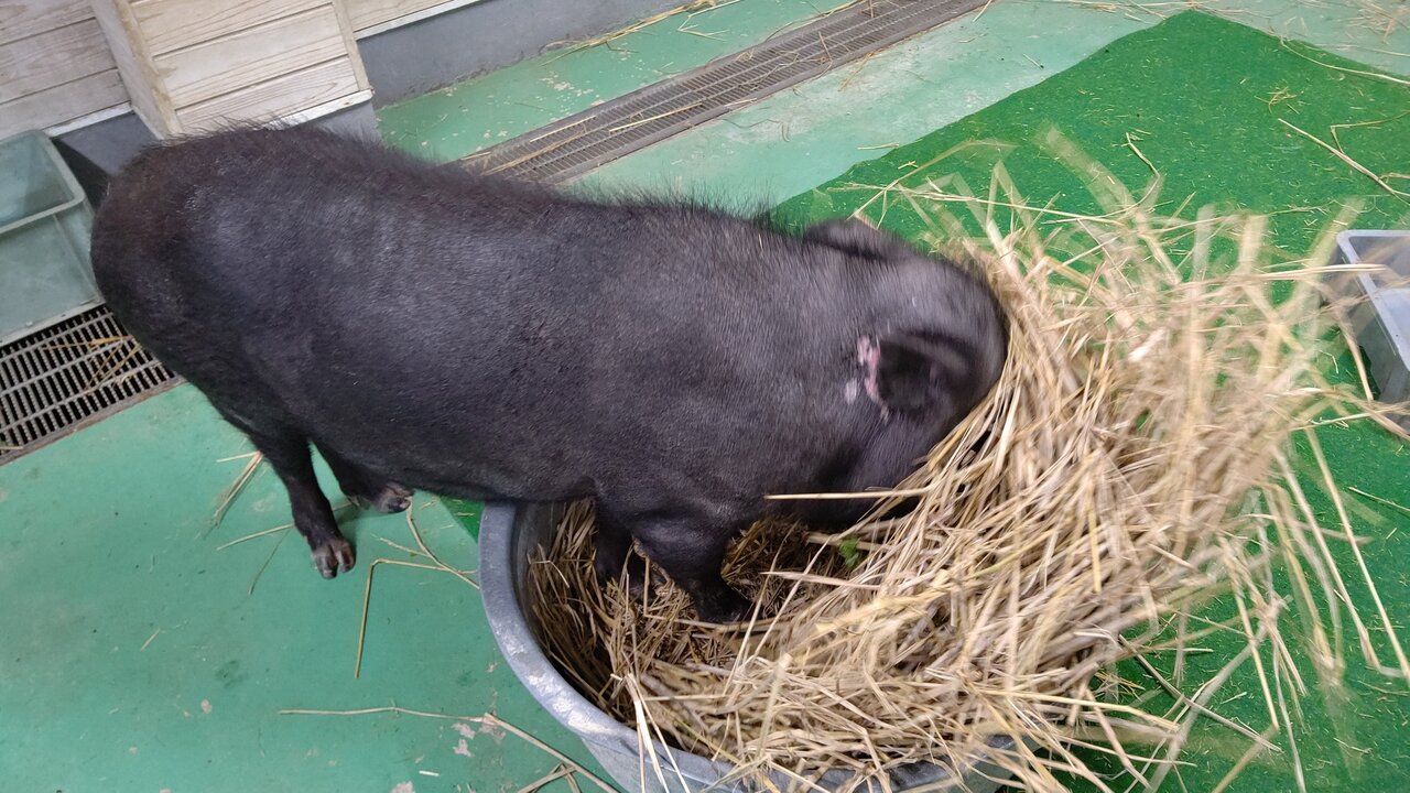 以前ミニブタのトンキチ君のご紹介を少ししましたが、今回はまたミニブタの