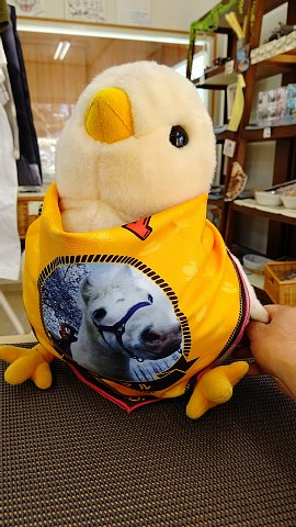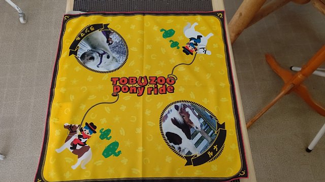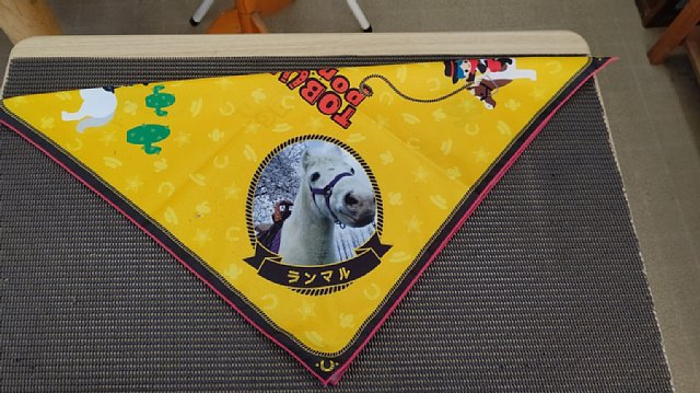 ルナちゃんとランマル君のお写真がバンダナにデザインされています。