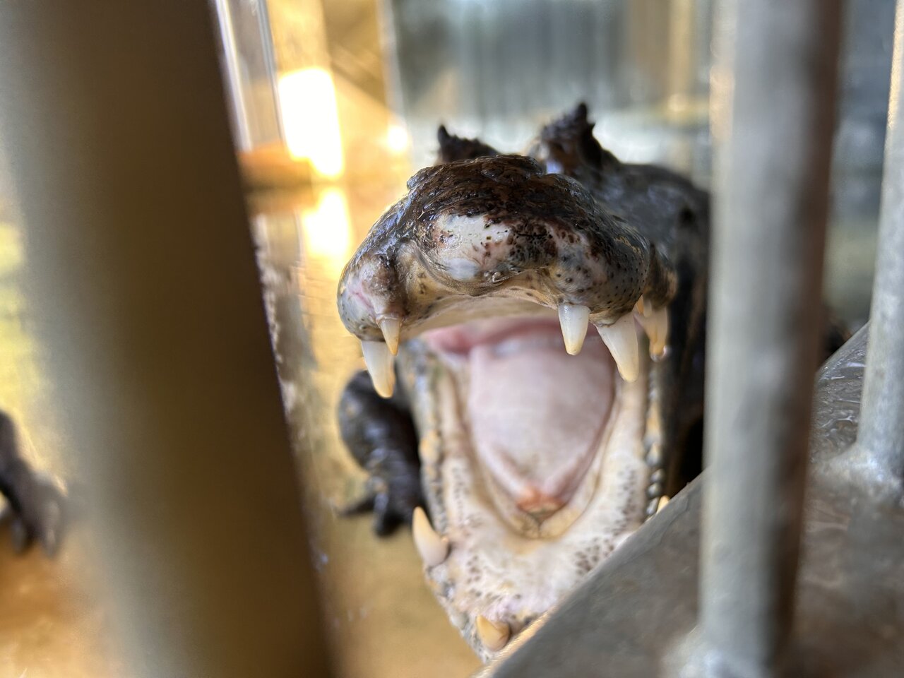 皆さん、ワニと聞いてパッと思いつくことはなんでしょうか?やはり口、歯が特徴的ですよね。私も担当になって初めて近くに行けた時、まず口の中を覗きこんでしまいました。