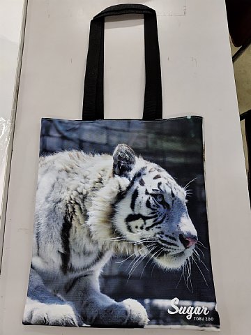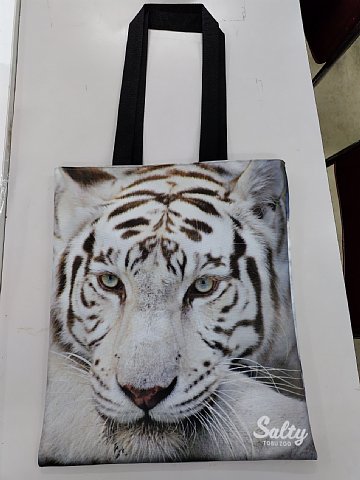 ホワイトタイガーのシュガー&ソルティのフルカラートートバック。両面印刷になっていて