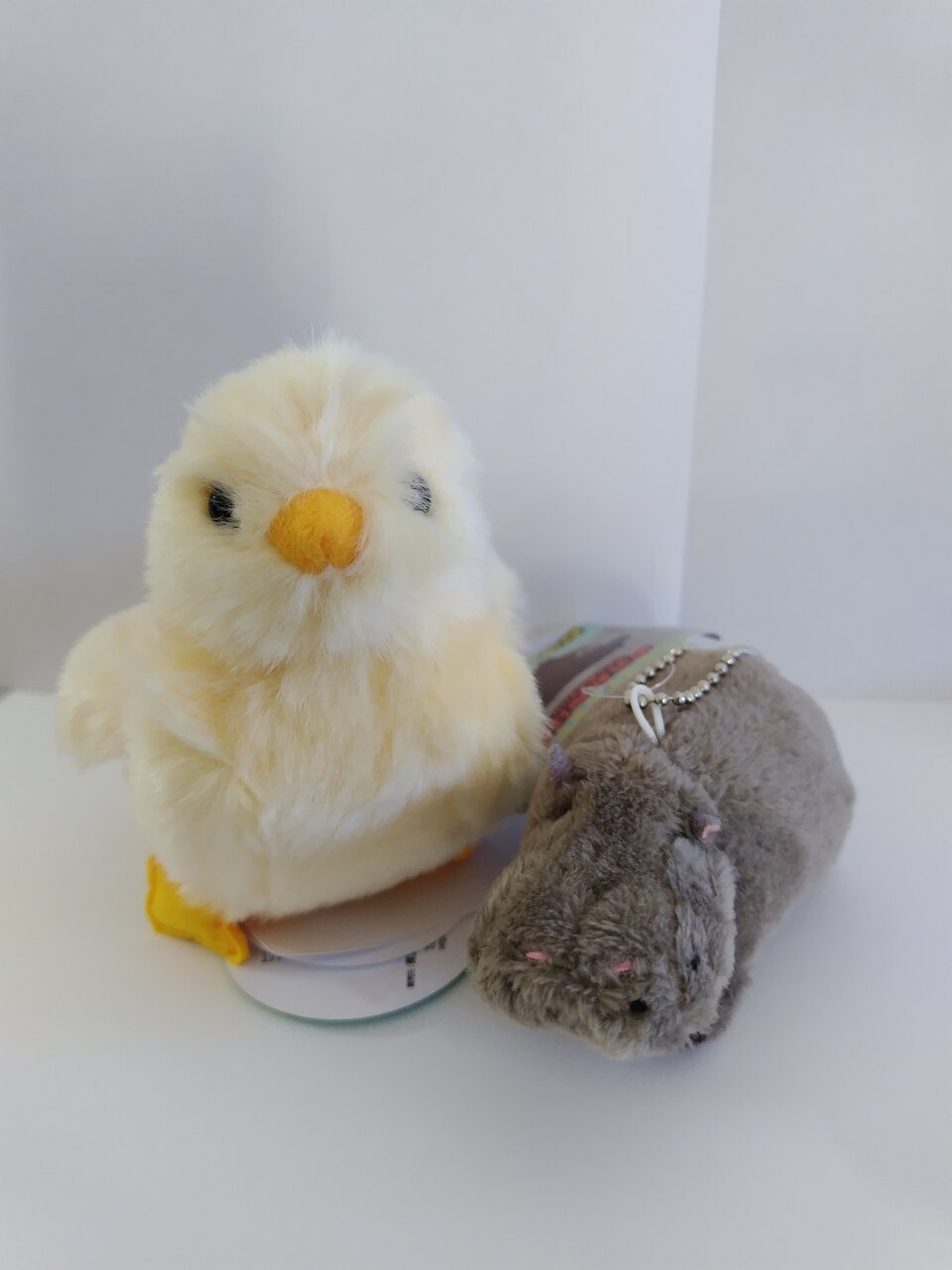 ヒヨコのヌイグルミが手の平に収まるサイズなので、小さいのが伝わりますかね?