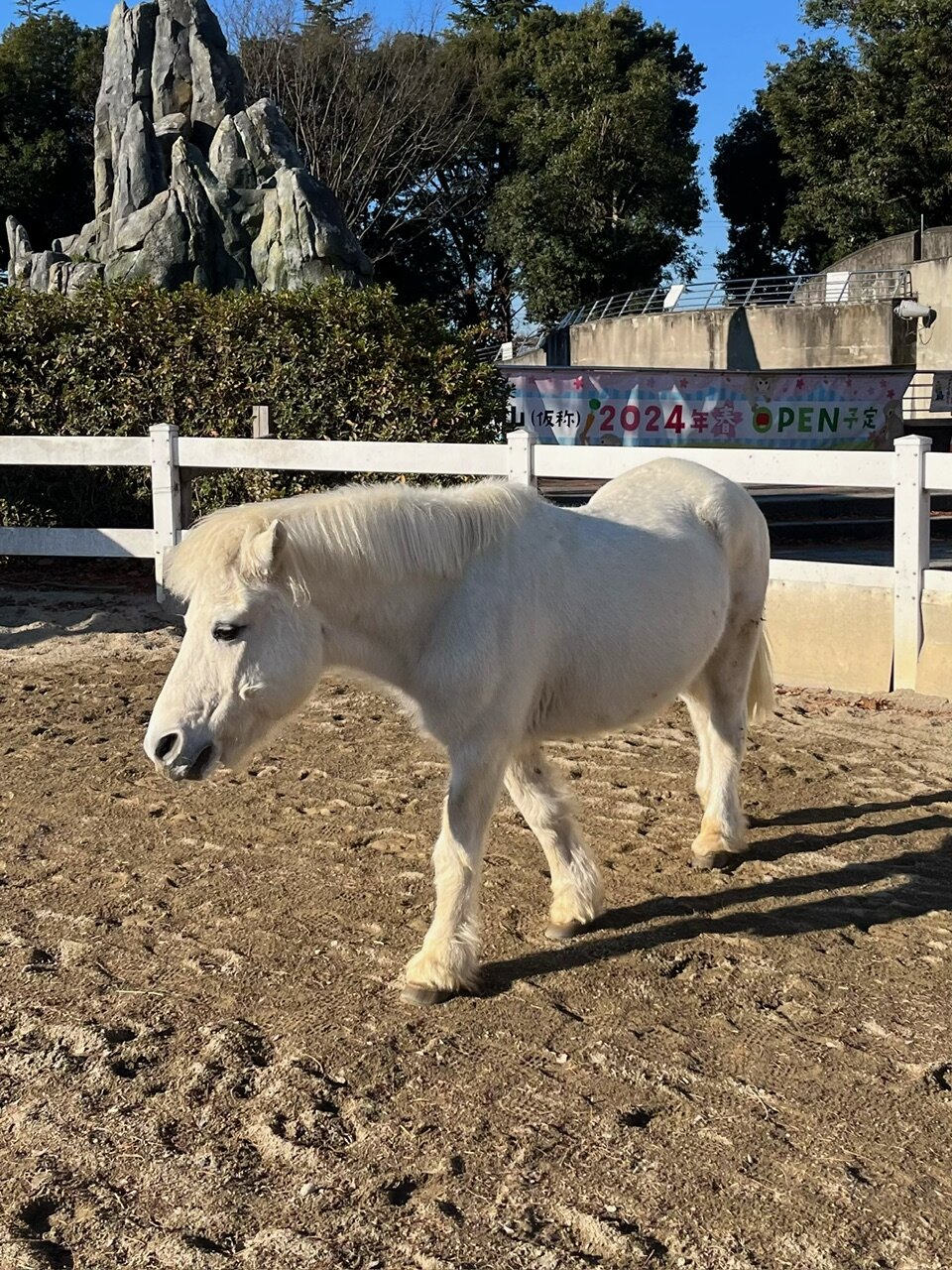 今は、おやつコーナーのニンジンをたくさんもらって幸せそうにしています。そんなポコちゃんの仲良しポニーは、隣の展示場にいるアオイちゃんです。アオイちゃんとはスエトシ牧場でも一緒に過ごしていた旧知の仲であります。おやつの取り合いでたまにケンカしていますが・・・