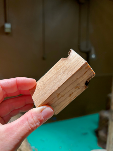 木を小さく切っただけのおもちゃでもサニーは楽しそうに遊んでくれます。