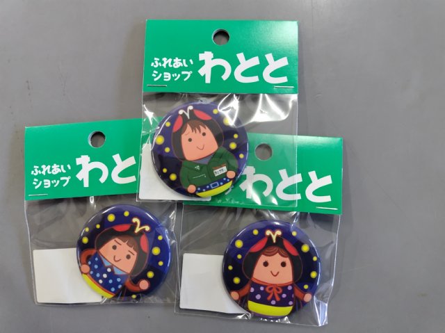ほたリウムのキャラクターの、カミナガさん、ホタコちゃん、ホタロウ君が蓄光缶バッジに