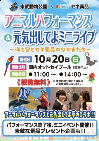 セキ薬品では必ず聴く、埼玉県では知らない人はいない、あのテーマソング【元気だしてよ】を、アニマルパフォーマンスのステージで披露していただくことになったのです!