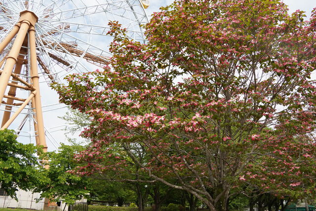 園内の八重桜といえば遊園地のパークライン沿いとアフリカサバンナ入口でしょうか。