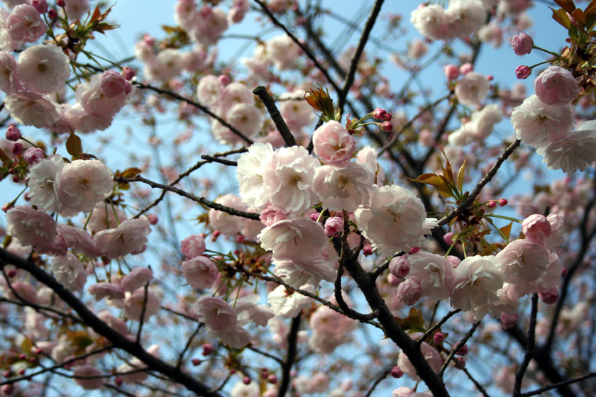 4・8八重桜並木ソメイヨシノはそろそろ終わりですが、園内には八重桜の並木もあって、こちらはこれから。ぽつぽつと咲き始めといったところです。