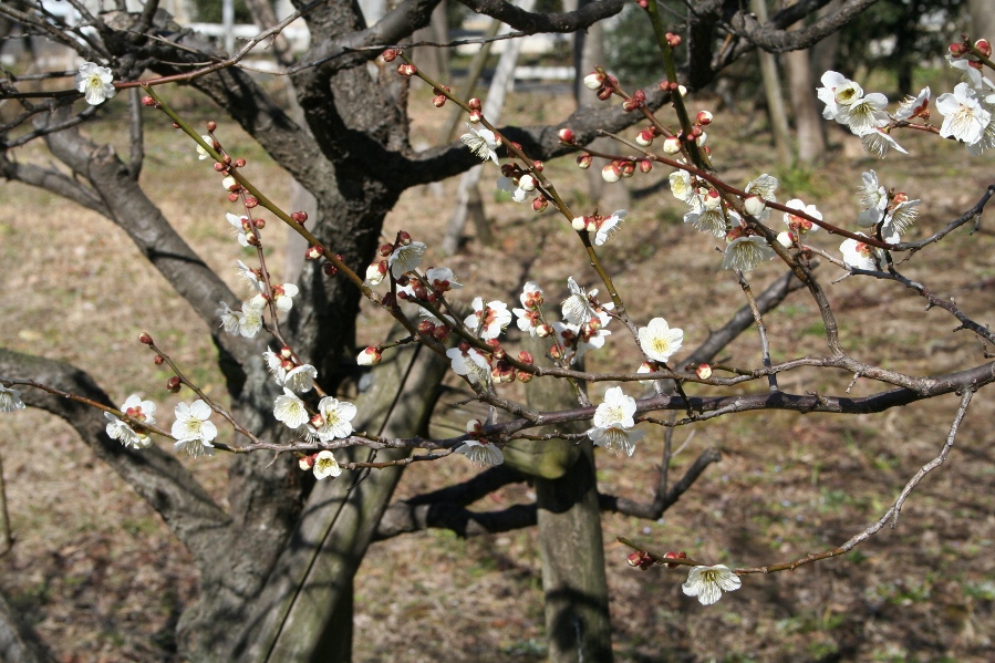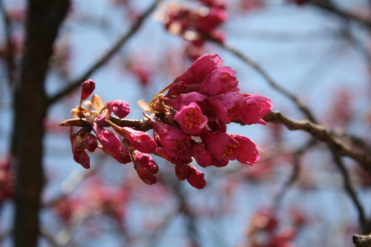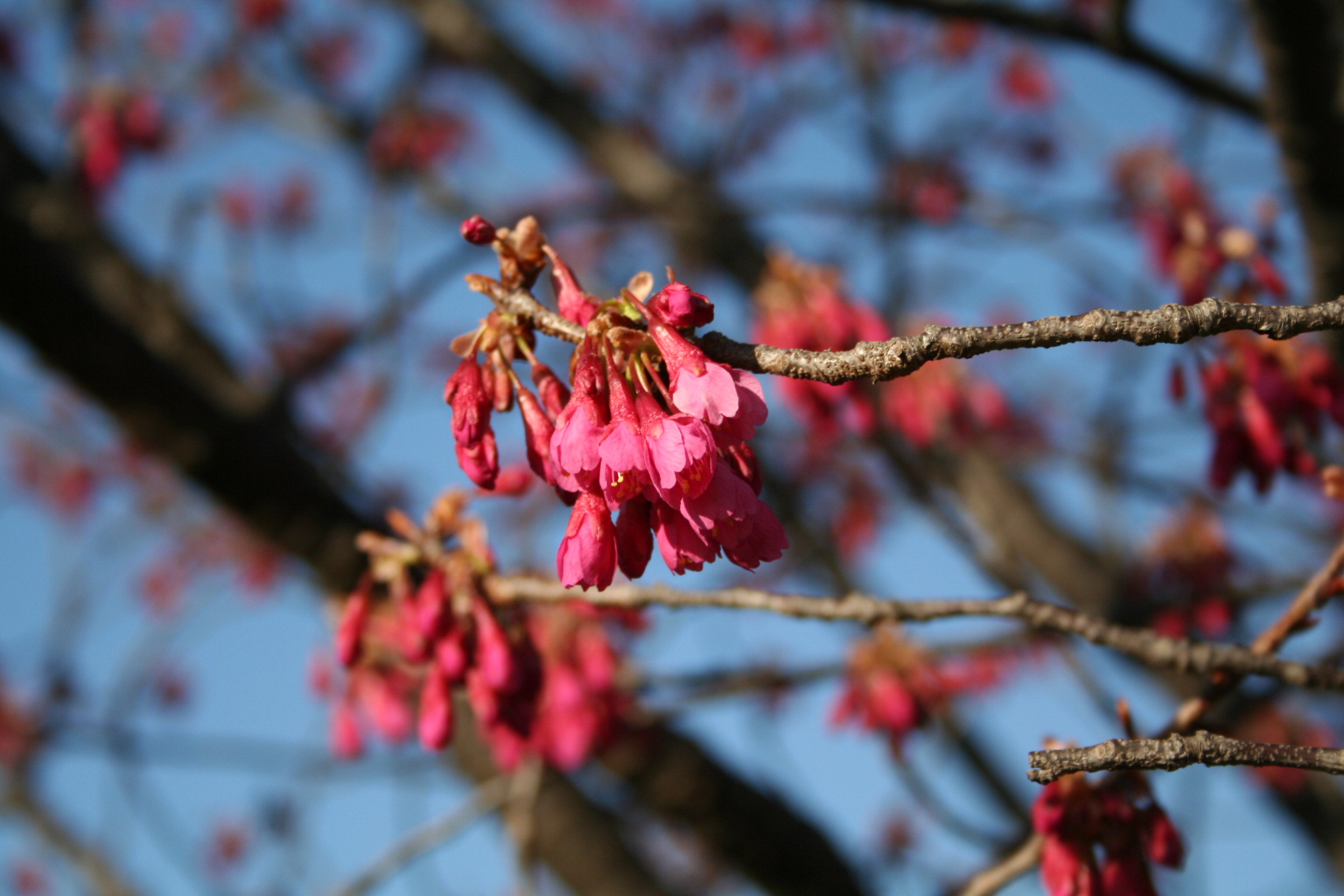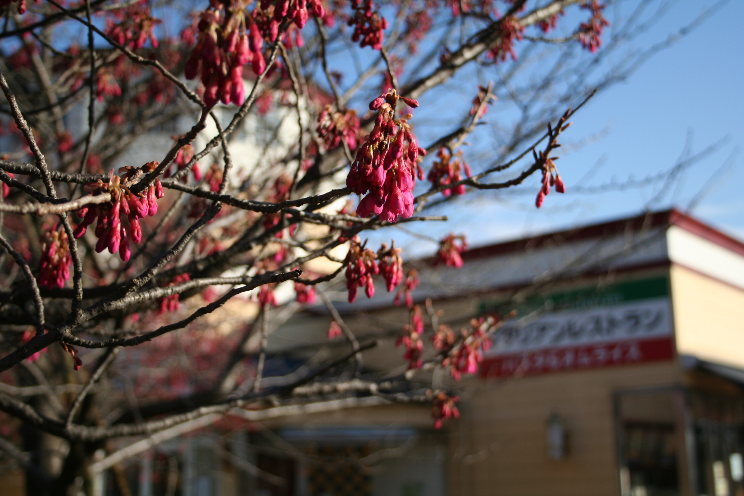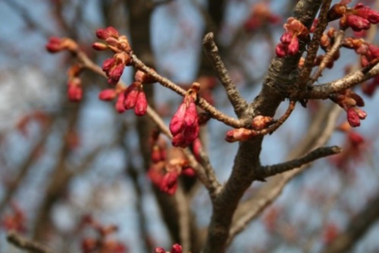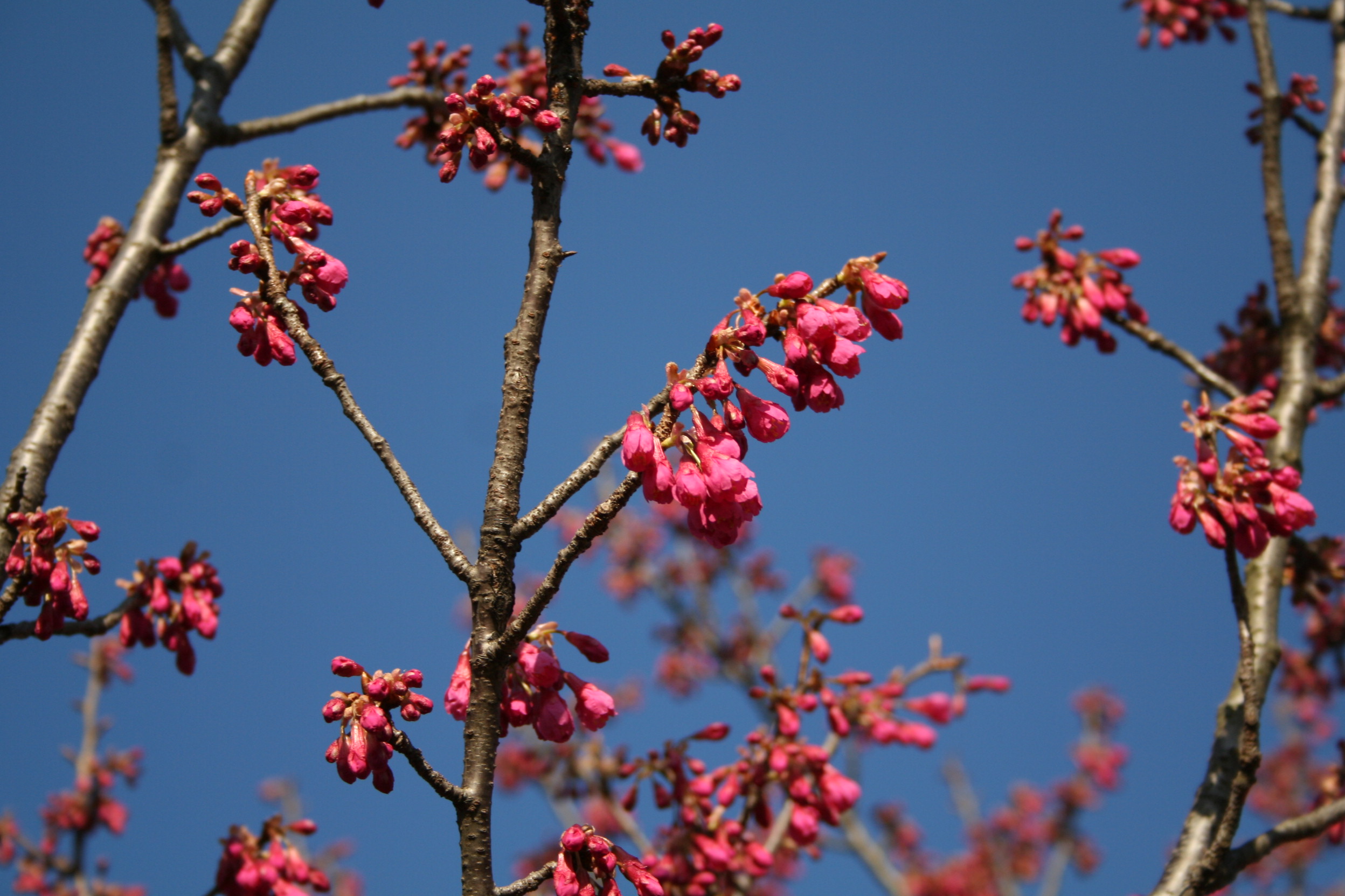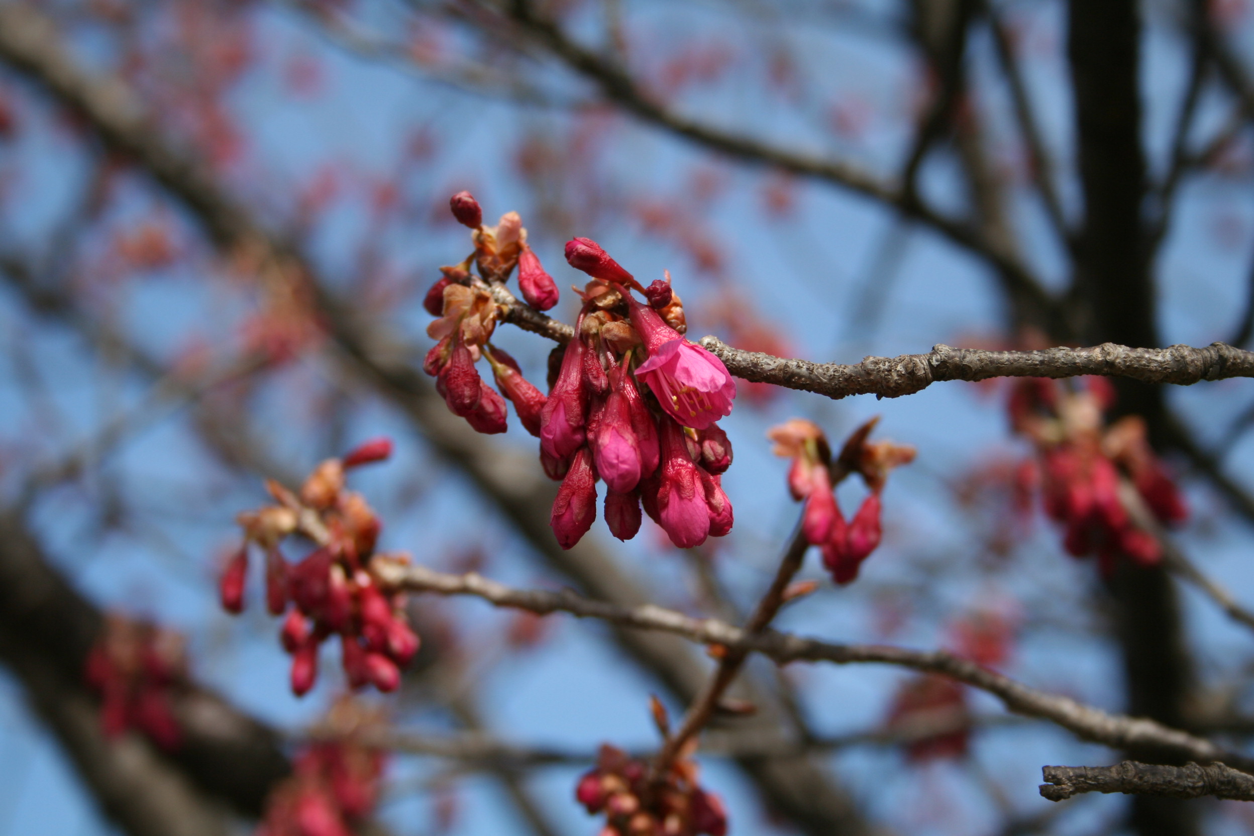 カンヒザクラ(寒緋桜)といえば沖縄が有名で、あちらでは普通でも1月から2月にかけて見られるそうですが、意外と寒さにも強くて関東でも栽培されています。さすがにこの辺では3月にならないと咲かないのですが、暖冬の今年は早くも花を開き始めました。