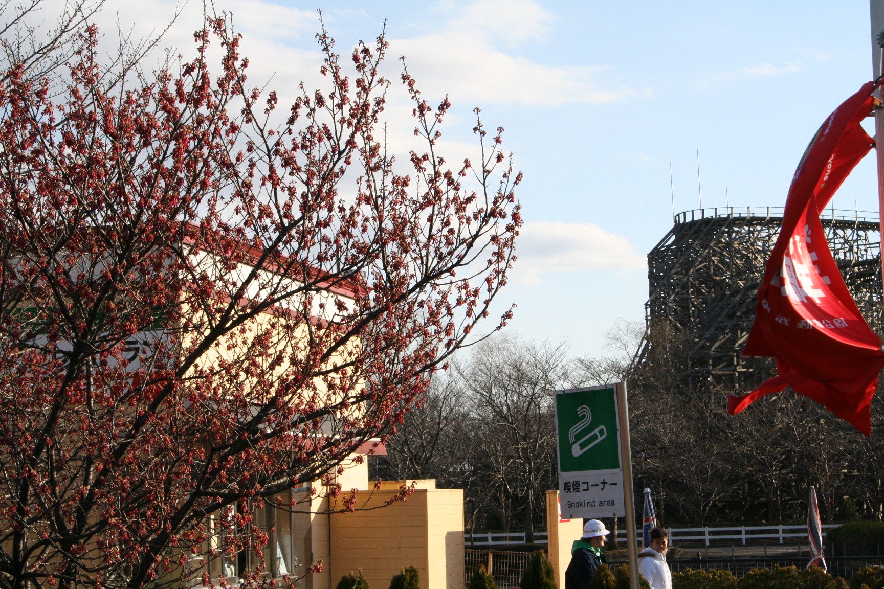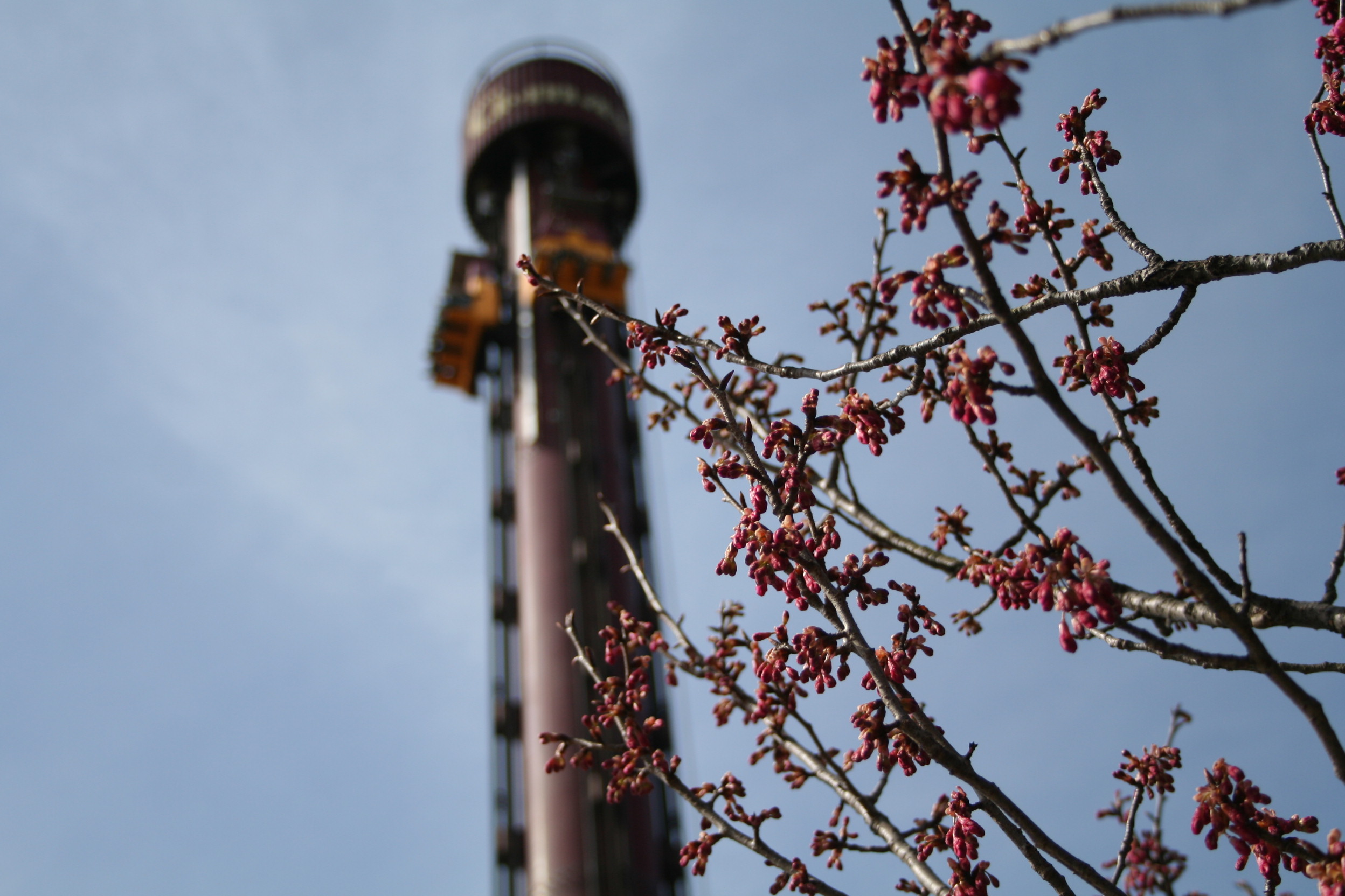 2月25日桜とG隣にある絶叫マシーン、G−maxをバックに取り込んでみました。G−maxの高さは50mあります。