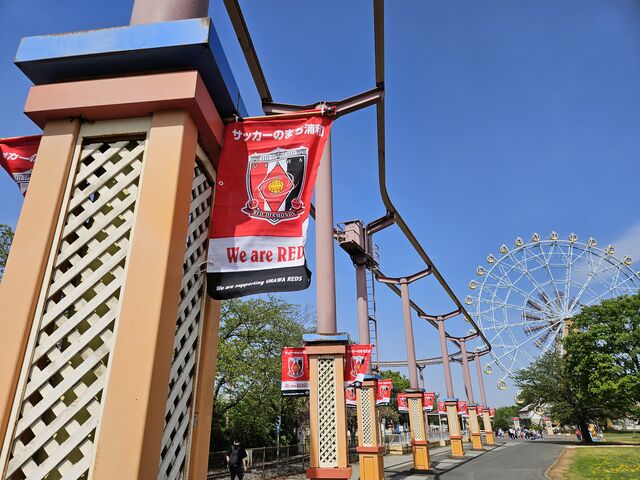 キャンバスガーデンそばでは浦和レッズのフラッグも登場⚽