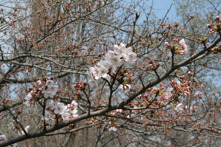 3・29バク舎前動物園ゾーンのマレーバク舎の前はすでに五分咲きに近づいていますね。このあたりは明日にも満開といったところでしょう。