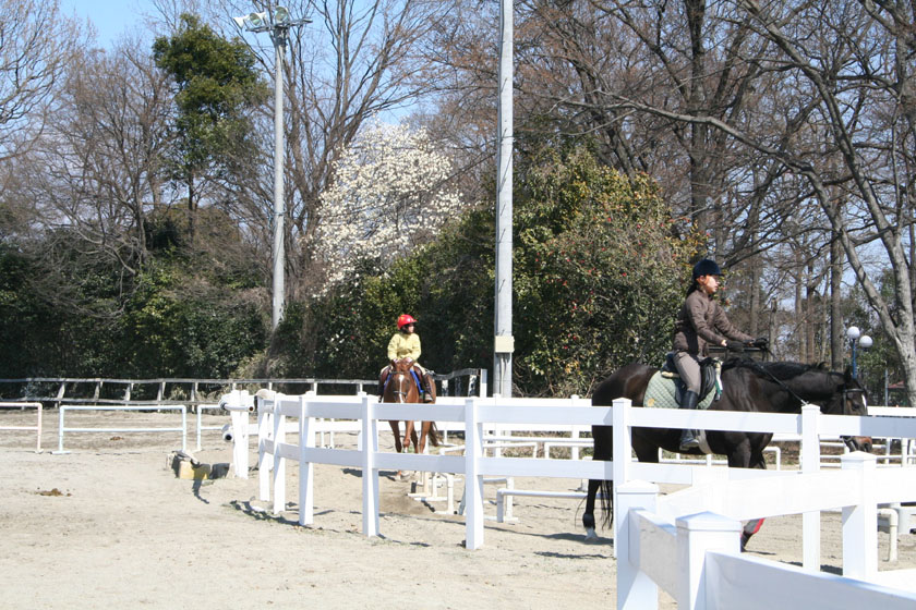 乗馬コブシ動物公園の一角にある乗馬クラブで大勢の方々が乗馬を楽しんでいらっしゃいます。馬場の周辺は森になっていて森のコースもあるのですが、そこでも大きなコブシの木が花盛りを迎えています。