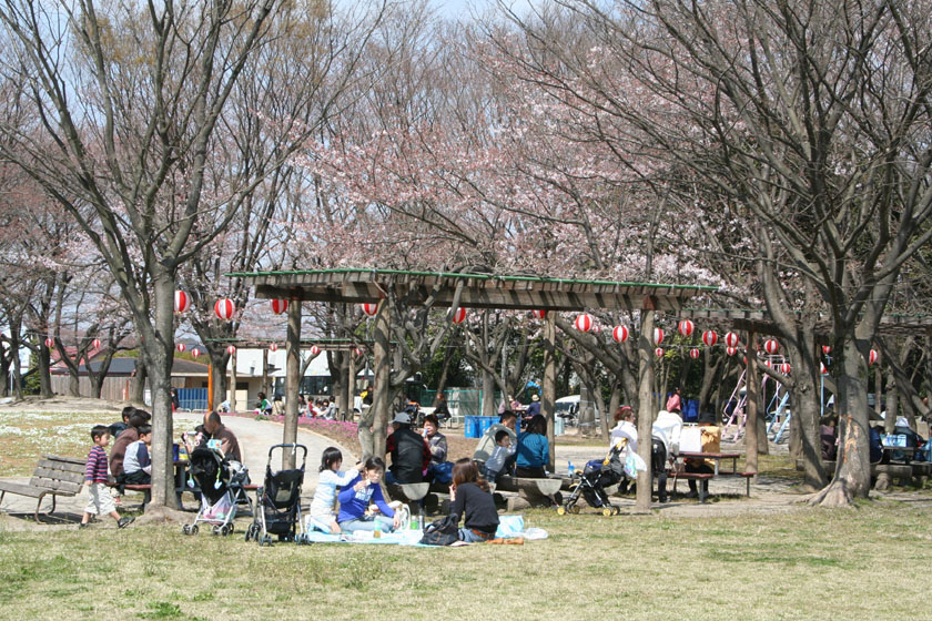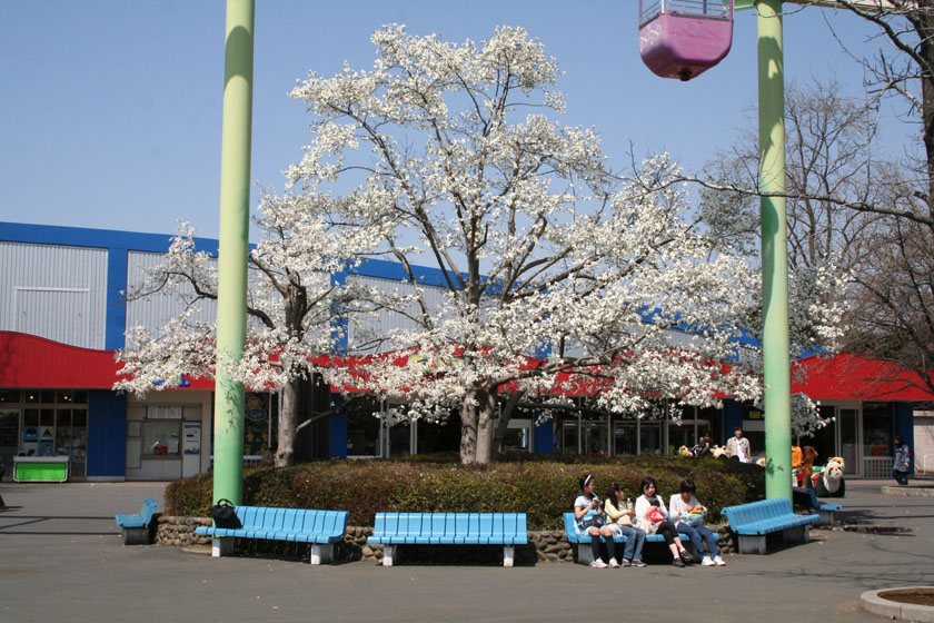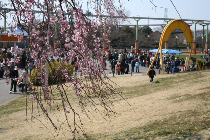 3・28トッピー広場晴れて気温のあがった今日28日。園の中央にあるトッピー広場にはおおぜいのお客様がシートを広げたりしてくつろいでいらっしゃいます。サクラも2分咲きです。