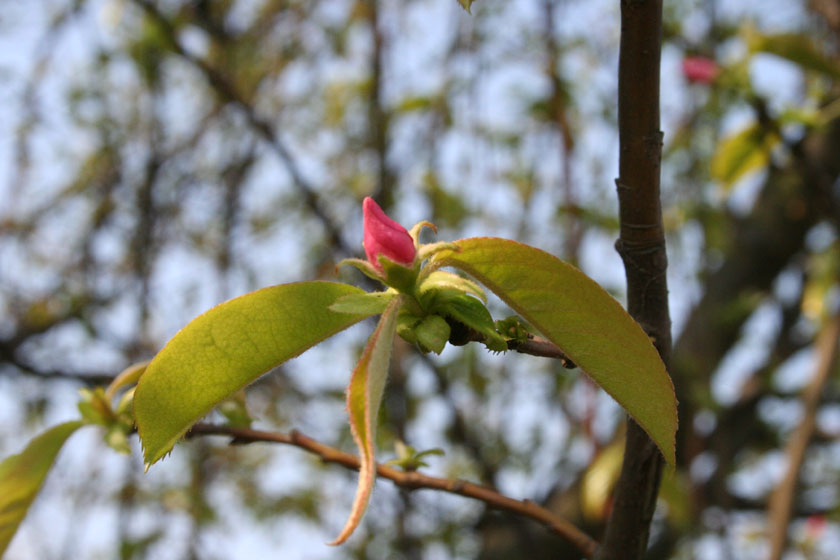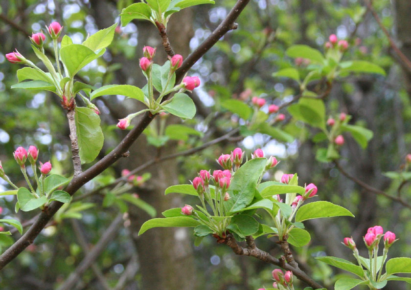 4・8ヒメリンゴトッピー広場のクマさんのカステラの近くにあるヒメリンゴです。まだつぼみです。