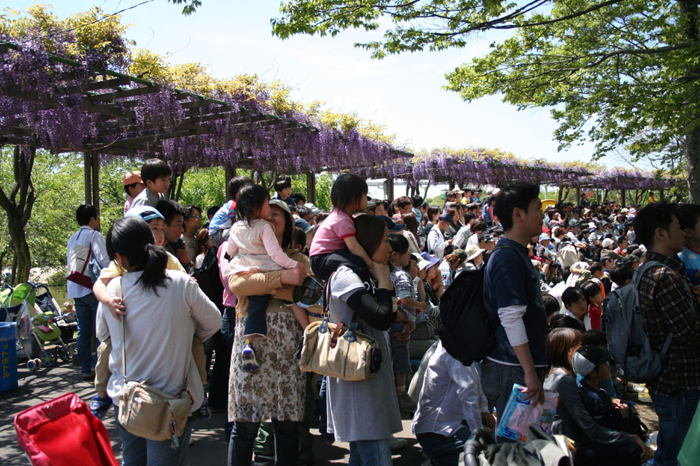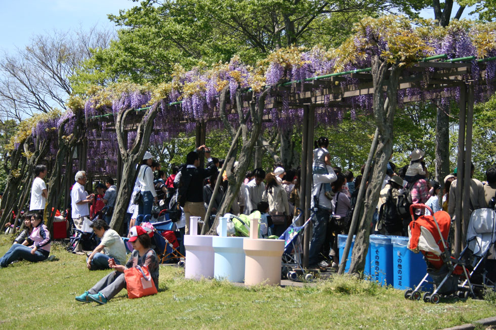 4・26ステージフジショーの会場はぐるりと藤棚で囲われていますが、そのフジがちょうど見ごろを迎えています。GW中はまっ盛りだと思われます。