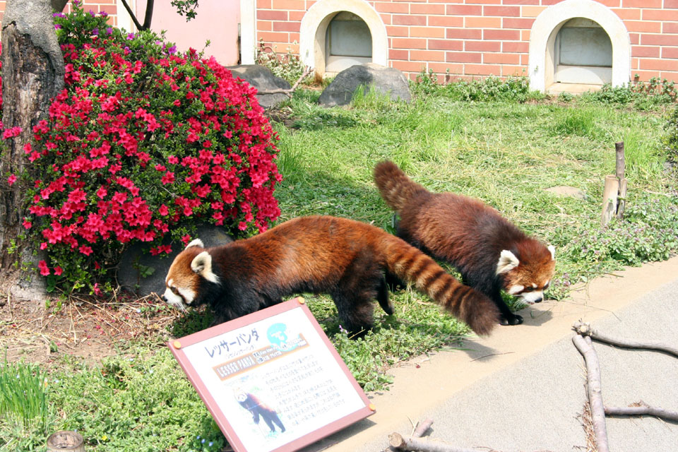 4・15ツツジとレッサーパンダ人気者のレッサーパンダ舎のツツジはもうすっかり咲きそろいました。ほかのツツジはところどころ咲いていますが、全体的にはこれからというところです。