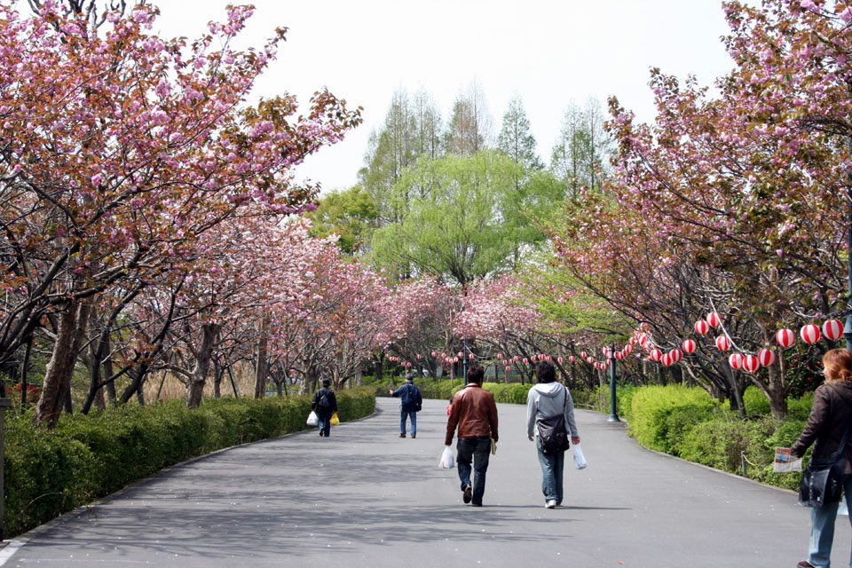 4・11ヤエサバンナキリンやシマウマがいるアフリカサバンナゾーンの入り口にも八重桜がたくさんあります。