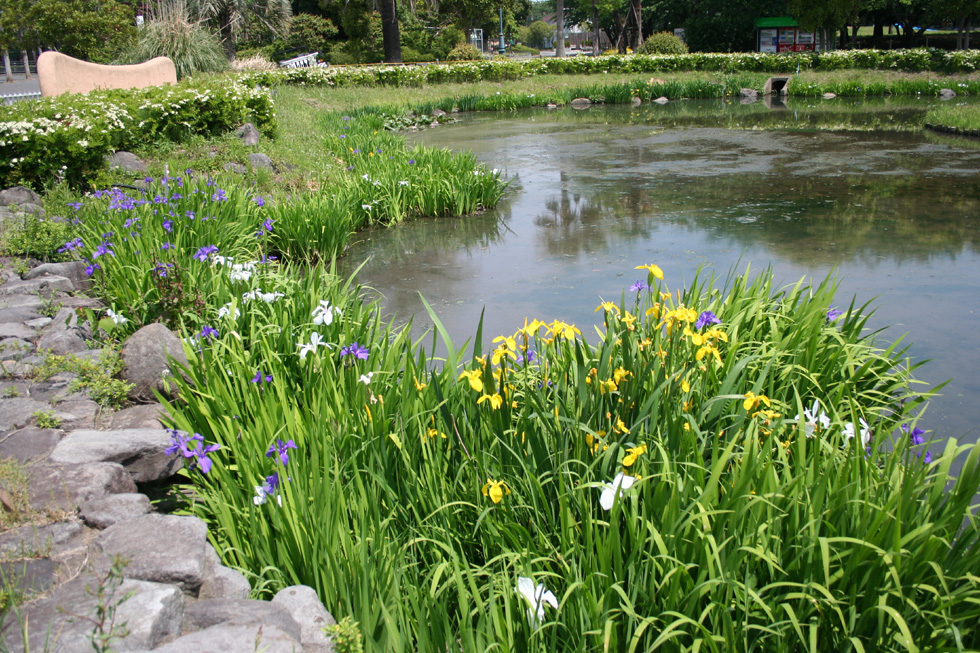 5・7カキツバタ1池のほとりに紫、白、黄色など色とりどりに咲き始めてきれいです。