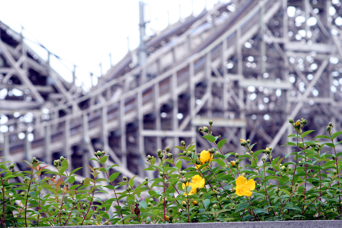 5・3ツツジとG4月に低温の日が多かったせいかツツジの開花が遅いように感じます。東ゲートを入ってすぐにある白鳥池のツツジです。バックはG-maxと観覧車です。