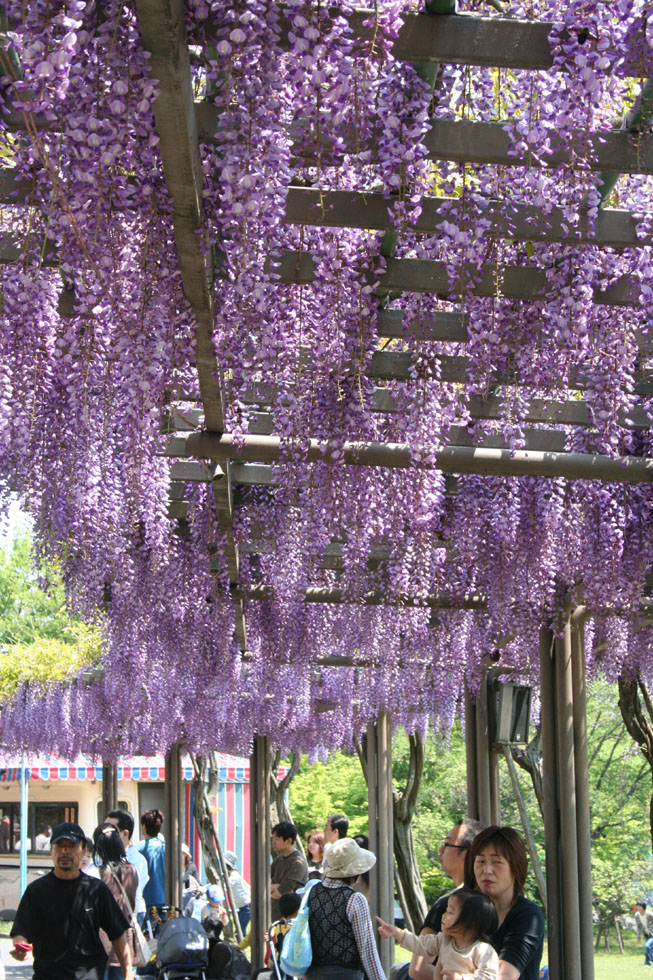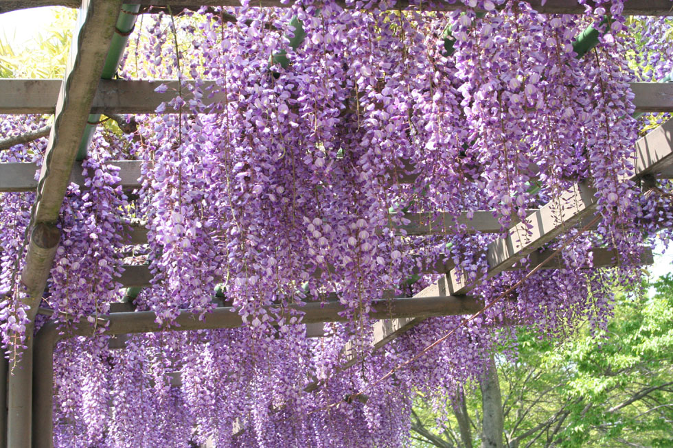 5・3ステージフジ2園内にたくさんあるフジのなかでも、ここステージ周辺のフジは色も房の大きさも一番見ごたえがあるかもしれません。