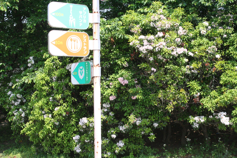 5・7キャットツツジホワイトタイガーやライオンなどネコ科の猛獣を集めたキャットワールド入り口のツツジです。いっしょにサルスベリがあります。こちらは夏の花ですね。