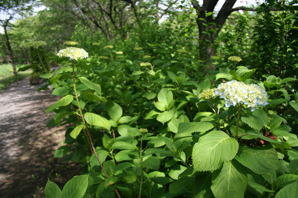 5・27アジサイもうしばらくするとアジサイの季節です。アジサイが咲くころは梅雨の季節でもあるので東武動物公園もご来園のお客様が減って静かになります。この写真はレジーナ横の遊歩道です。アジサイの花穂が少し色づいてきました。
