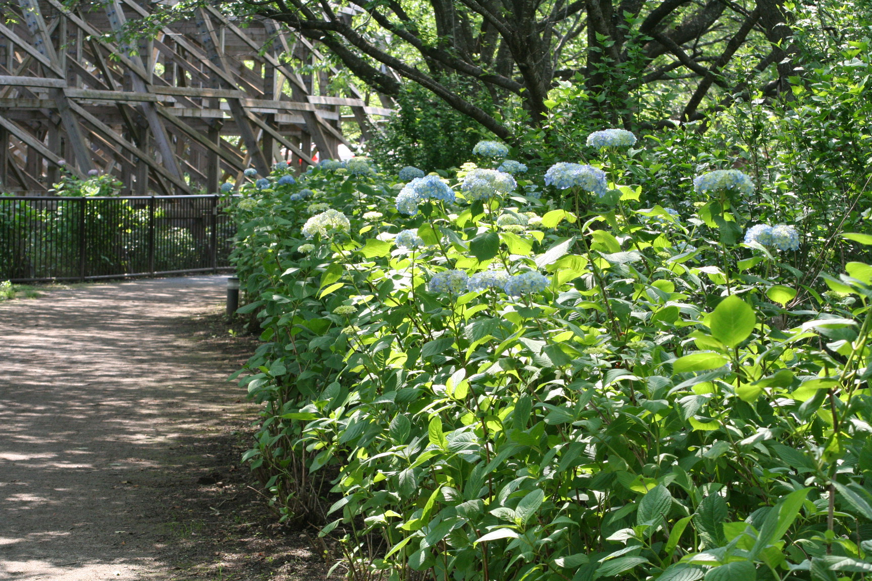 いよいよ梅雨の季節となりましたが、今年は今のところ空梅雨気味ですね。園内はアジサイが見ごろとなっています。アジサイは東ゲート近くの白鳥の池、レジーナ周辺、太陽のめぐみ鉄道中央園駅付近、動物園ゾーンなどでごらんいただけます。