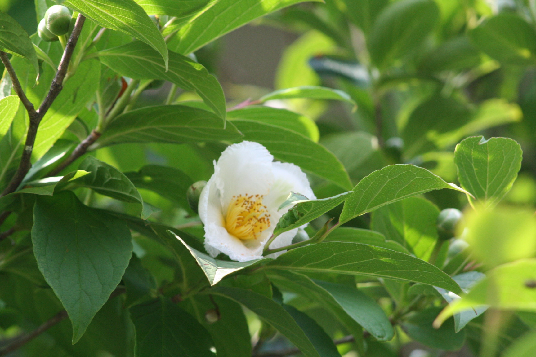 6・2ナツツバキナツツバキです。まだ咲き始めで、つぼみがたくさんついています。これから7月の上旬頃までお楽しみいただけます。