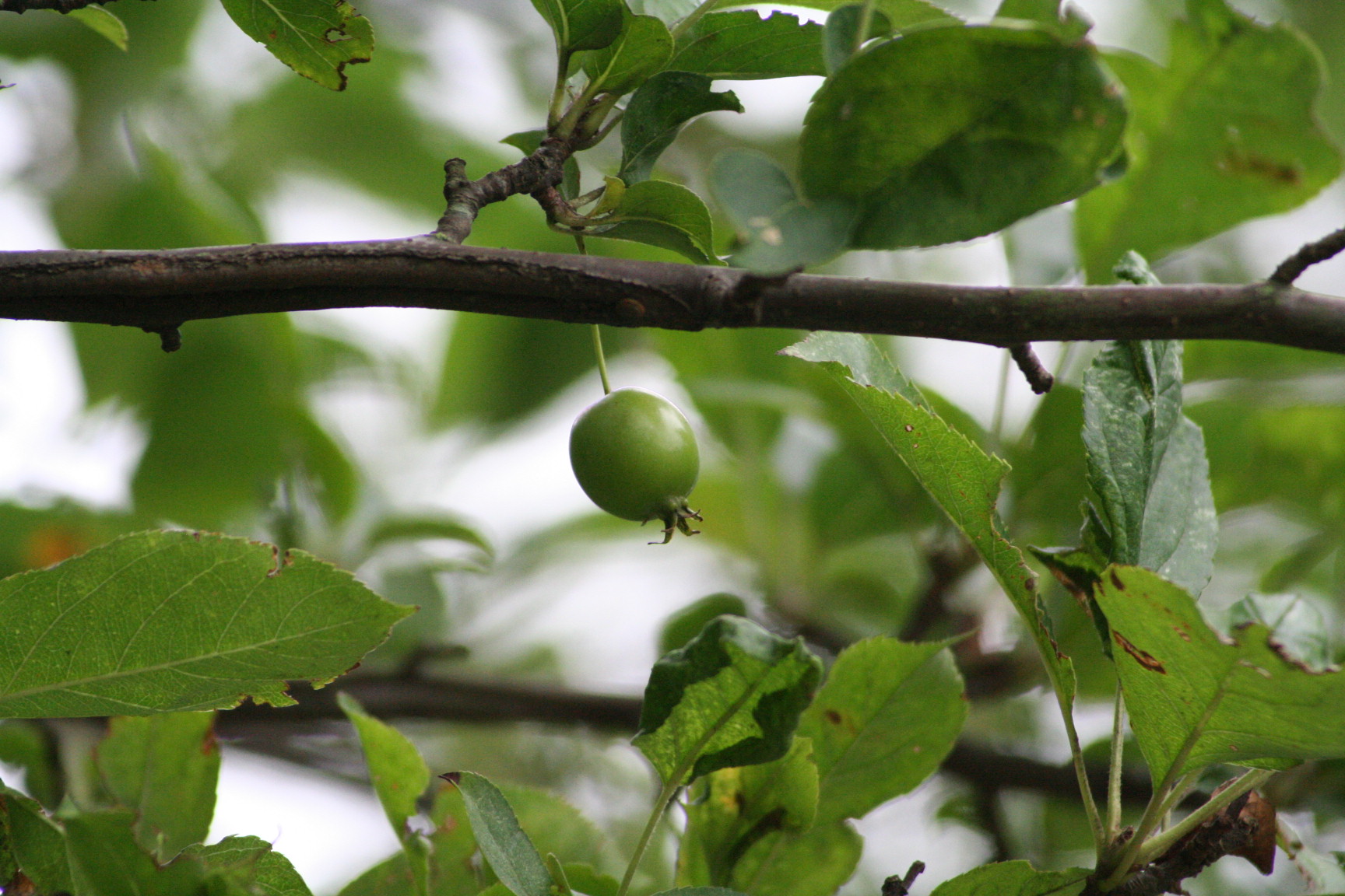 こちら(下左)はコブシ。これも豆みたいです。少し色づいていました。右はトッピー広場にあるヒメリンゴ。小さな実がたくさんついていますが、まだ緑色なので見つけるのは難しいかもしれません。ちなみにすぐとなりのカリンはまだ影も形もありません。