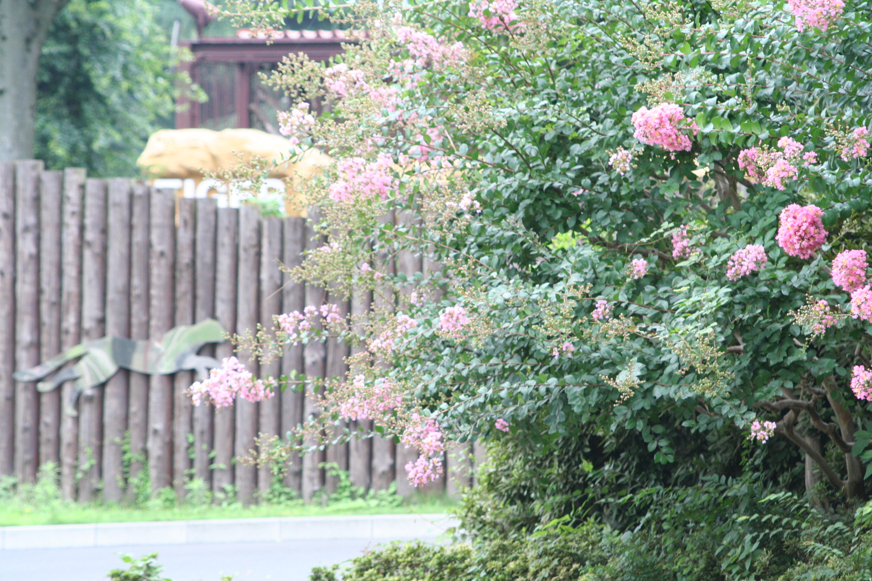 動物園ホワイトタイガー舎前のサルスベリも咲きそろってきました。これから夏の長丁場をがんばって彩ってもらわなければなりません。