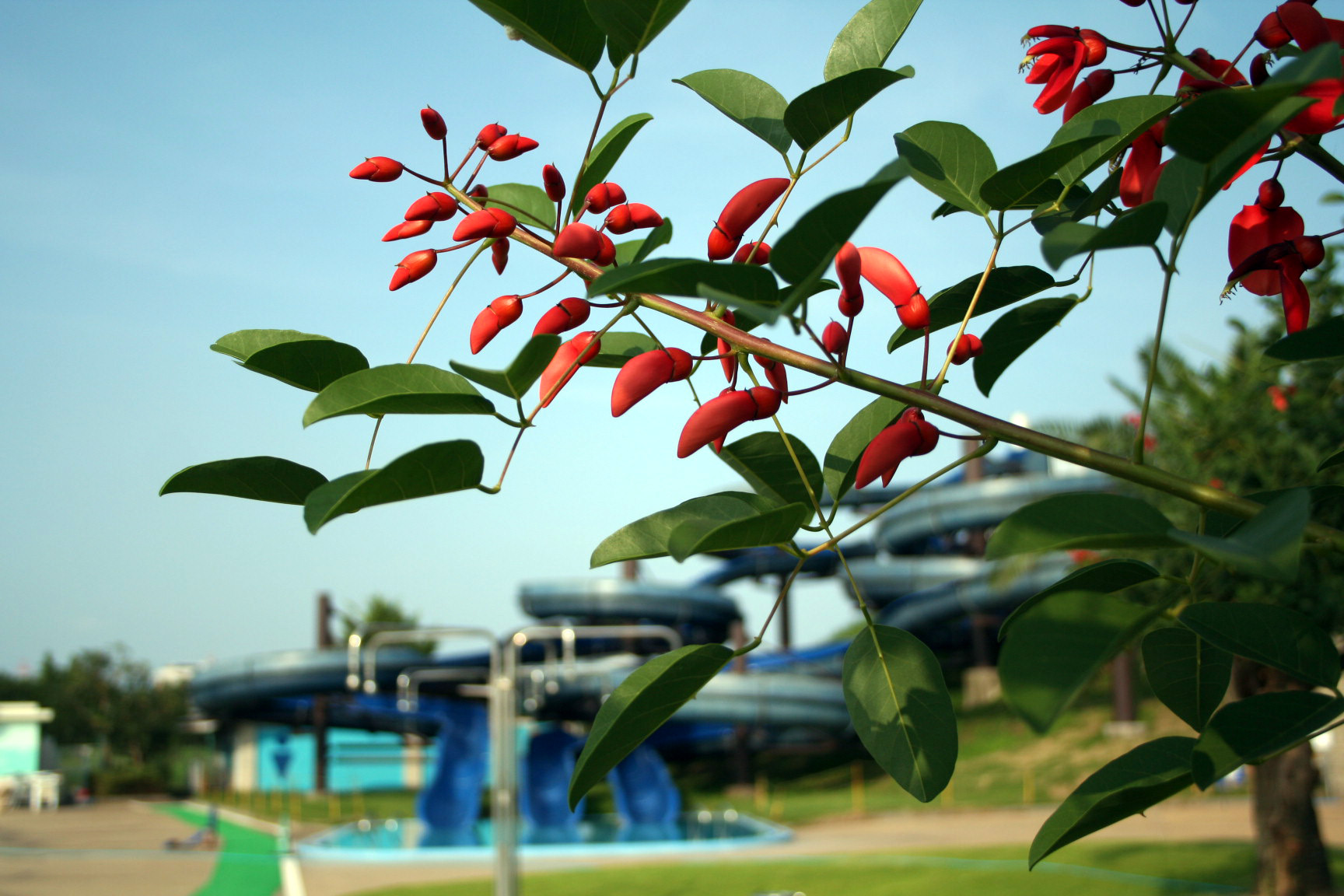 そのスーパープールには沖縄で有名なデイゴがあるのですが、実はこの花6月が盛りで7月には散り始め、プールが始まる頃にはほとんど残っていないんです。スイマセン。