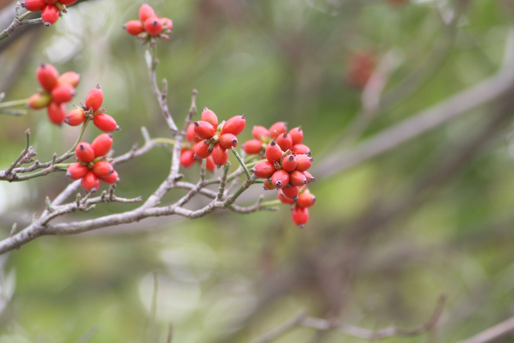 秋は木の実と紅葉の季節です。前に紹介した木の実のほかにハナミズキの赤い実をみつけました。下右はシダレザクラです。葉が色づいてきましたが、サクラは紅葉するはしから散ってしまうのがもったいないです。