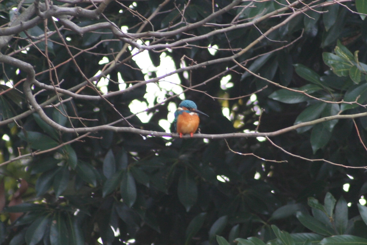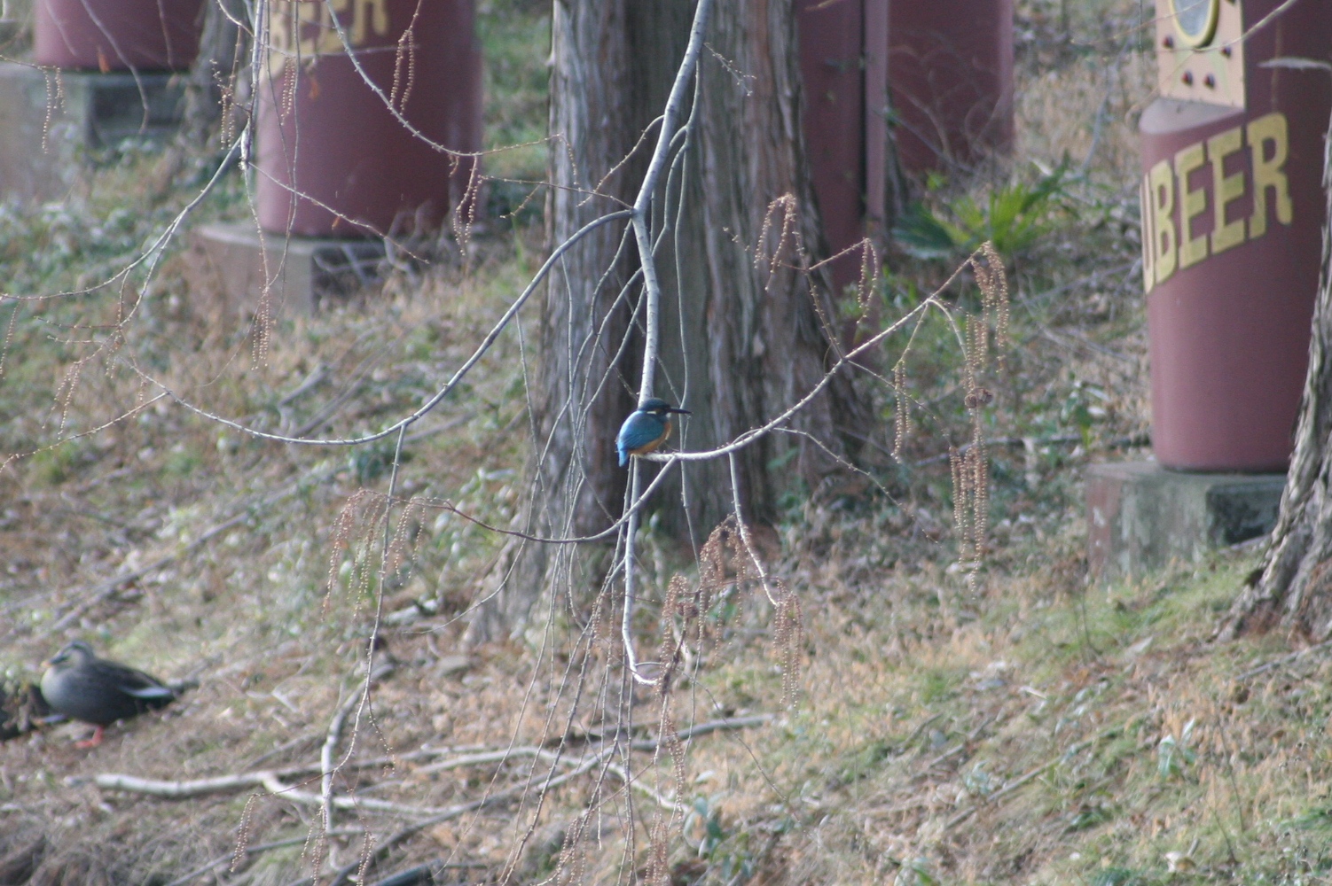 リスザル池カワセミ以前から動物園の飼育係から見かけたという情報は聞いていたのですが、トッピー広場の近くにあるボリビアリスザルの池にいるところを自分で確認できました。リスザルが渡るロープにとまっているところを発見。近づくと向かい岸の木の枝にとまって水面をじっと見つめていました。そして突然飛び立つと水面に一直線。そしてふたたび木の枝へ。こんな様子が間近で観察できました。