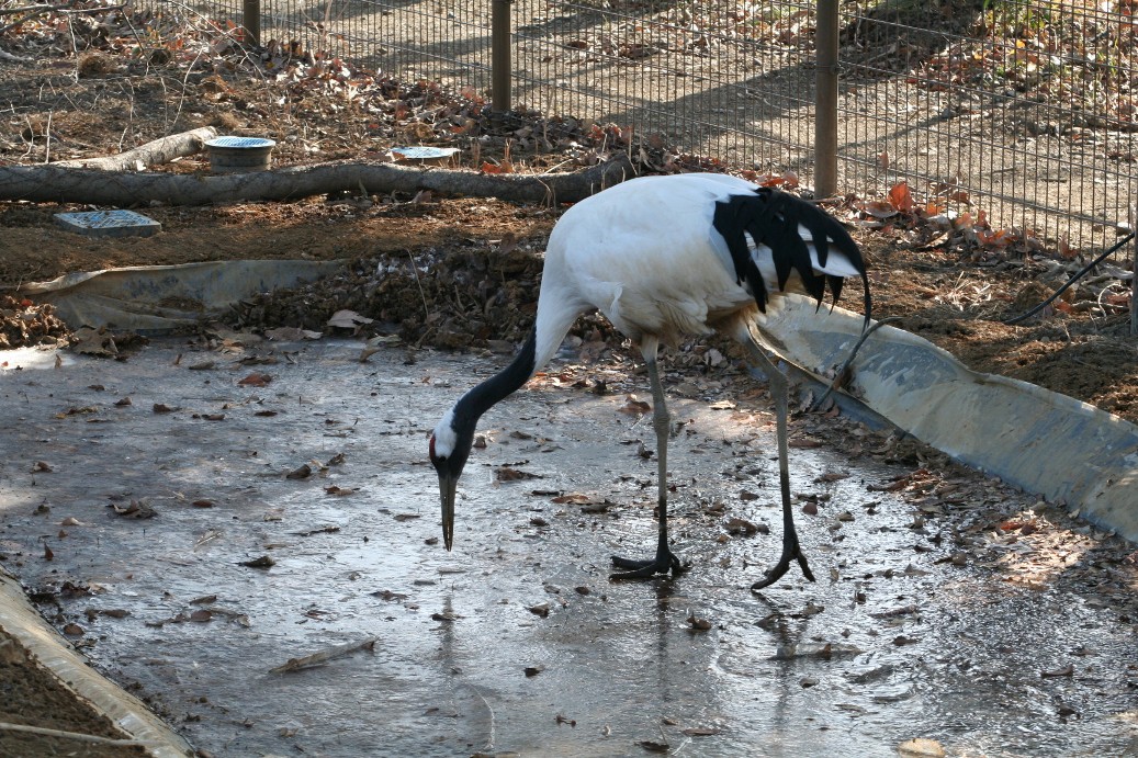 日本産動物舎では氷の上をタンチョウがおっかなびっくり歩いている姿が見られました。寒い日ならではの光景です。寒い日に来るとこんな貴重なシーンが見られます(笑)。