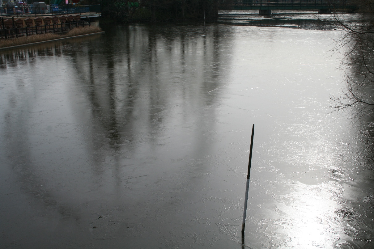 まいど同じ言葉ですいませんが、寒いです〜。今朝は風が強かったので大きな池は凍っていませんが、小さなところはずいぶん厚く凍ってしまいました。