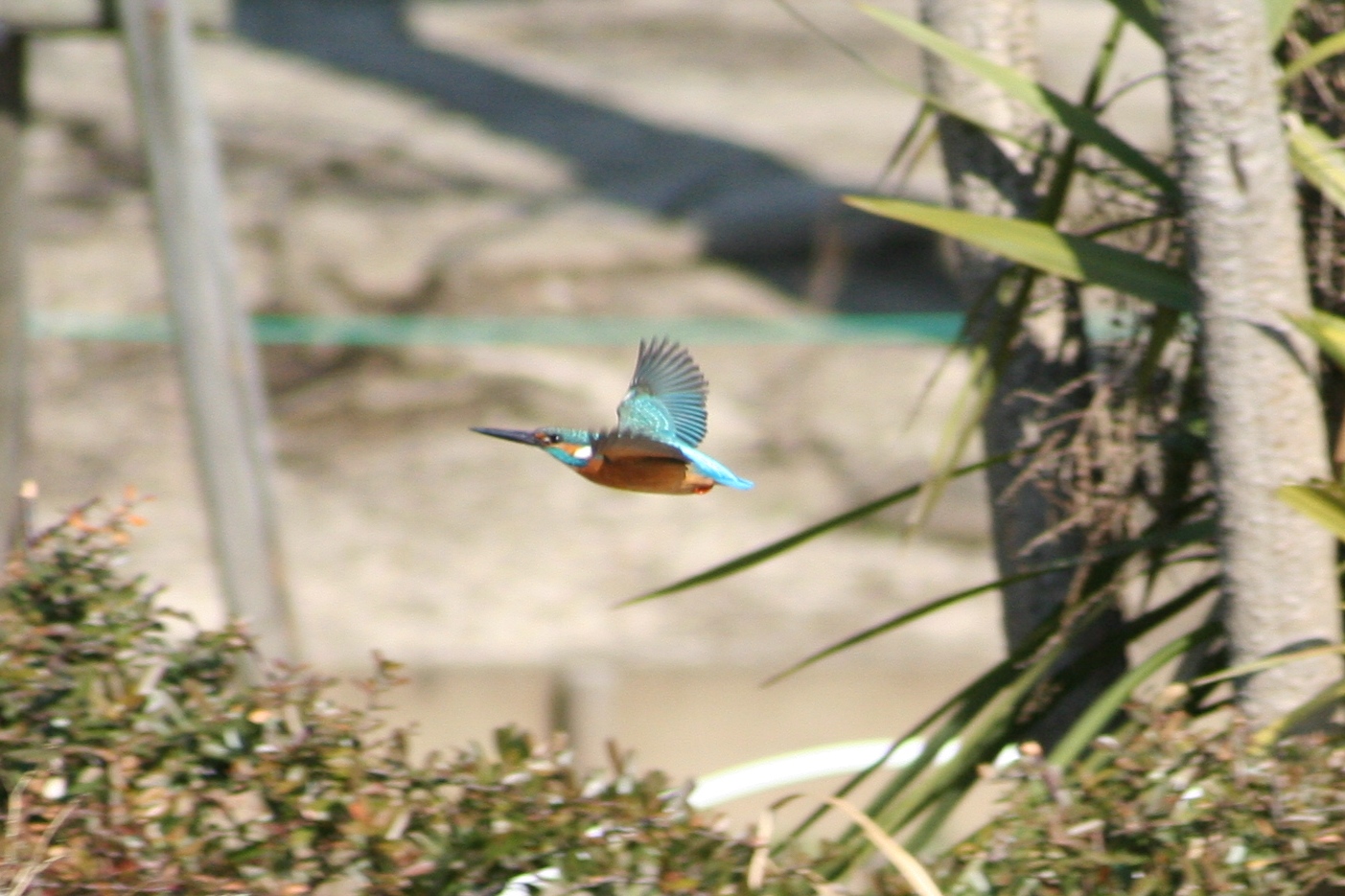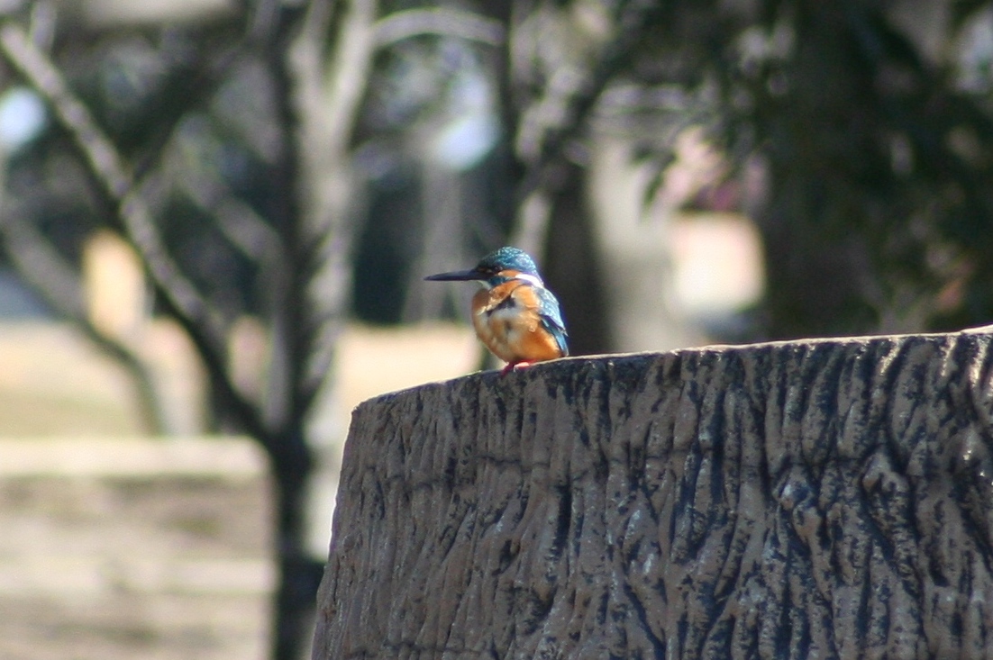 そんな中、またまた園内でカワセミを発見しました。今度は動物園のフラミンゴ舎の正面にあるわりと大きな池、以前にその池の島でワオキツネザルを飼っていたので、私たちはワオキツネザルの池といっているところです。